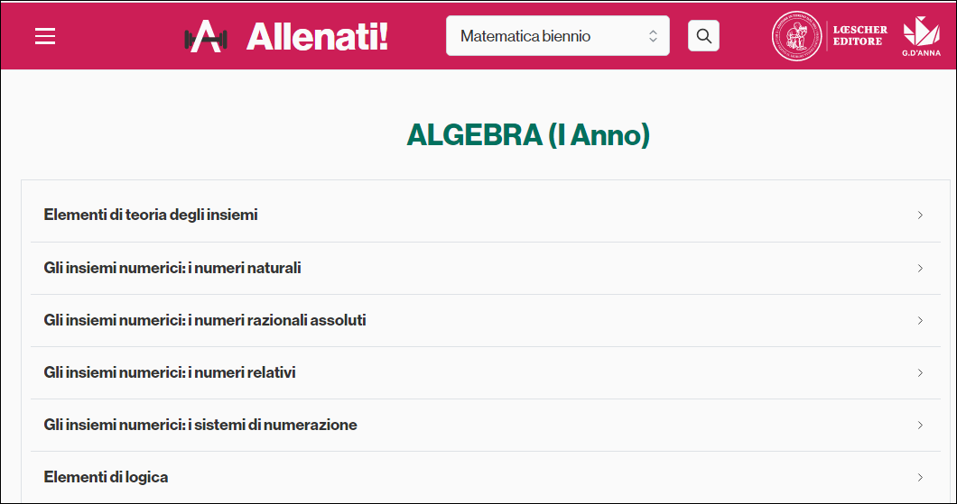 Una volta selezionata la disciplina, scegli dall’elenco degli argomenti quello che ti interessa per iniziare a esercitarti.